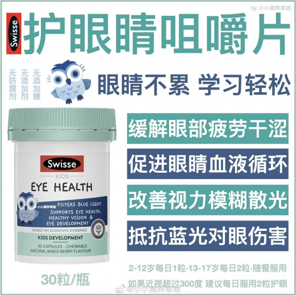 (直邮3瓶包邮特惠价格)Swisse儿童护眼片/越橘蓝莓叶黄素护眼咀嚼片30粒 × 3瓶 (最新保质期)
