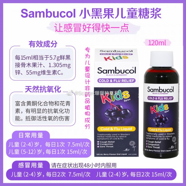 (西安现货/直邮)Sambucol小黑果接骨木儿童感冒糖浆/提高免疫力口服液(自用款推荐)(爆品热销)