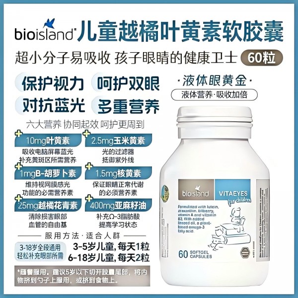 (新品)(西安现货/澳洲直邮)Bio Island生物岛儿童护眼儿童越橘叶黄素软胶囊60粒(最新保质期)
