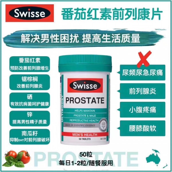 (西安现货/直邮)Swisse锯棕榈番茄红素前列康片/前列腺片50粒(最新保质期)