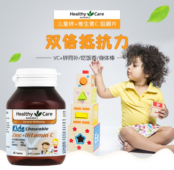 (现货)【Healthy Care HC 儿童维生素C+锌咀嚼片60粒】(2-12岁)