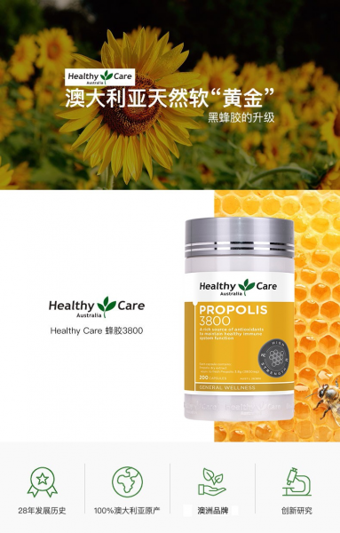 (国内现货)(新版)【Healthy Care / HC 3800mg最高浓度白金版蜂胶胶囊200粒】