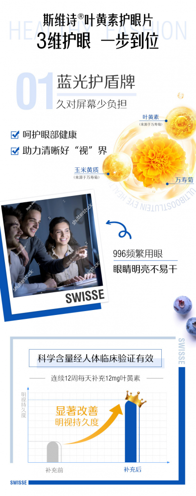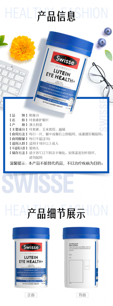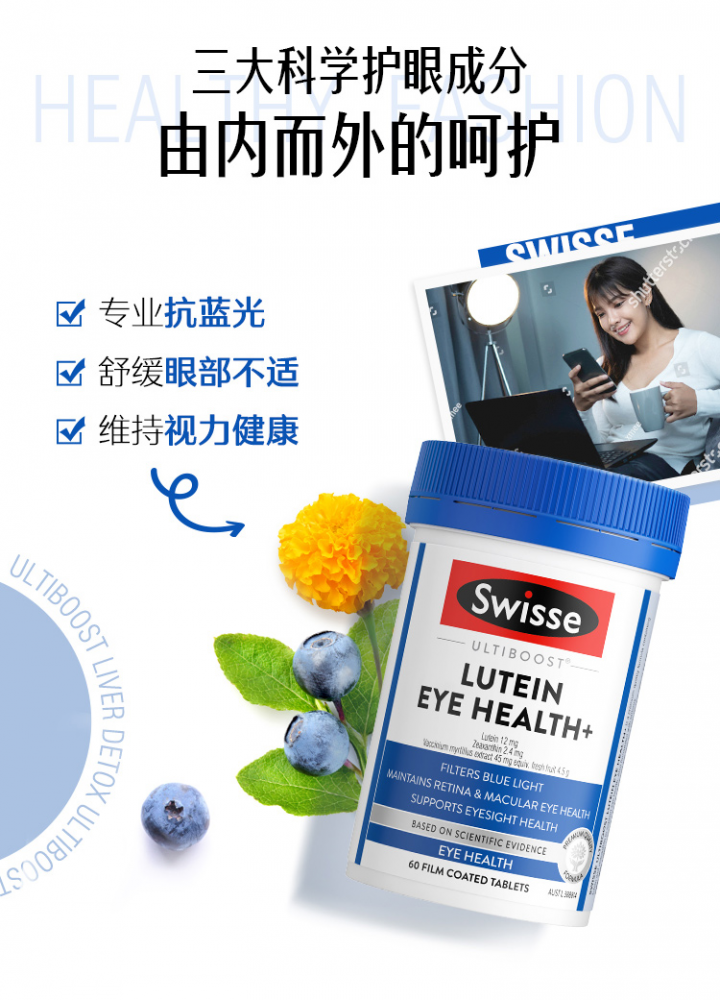 (西安现货/直邮)Swisse明眸小蓝盾护眼片(叶黄素)(买三瓶送飞利浦护眼仪)