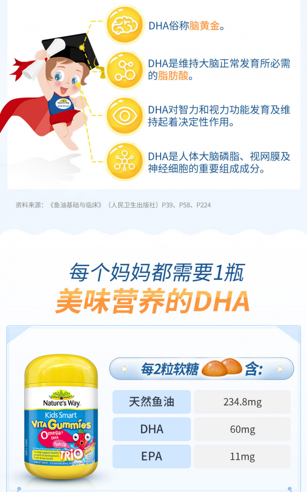 现货到啦!最新鲜日期!=过去60粒×2瓶【Nature's Way佳思敏Omega-3鱼油DHA多维软糖120粒(大瓶装)】(我家自用) 浆果、香橙、柠檬混合口味!满足孩子挑剔的味蕾!澳洲销量No.1的鱼油软糖!其丰富的天然鱼油、DHA和EPA含量能极大的促进儿童大脑发育、智力和视力功能发育、提高注意力、记忆力及理解能力!Q弹软糖亦可锻炼孩童的咀嚼能力,帮助口腔、面颊肌肉以及咀嚼肌发育,在体验进食乐趣的同时促进生长发育,一举多得好物!