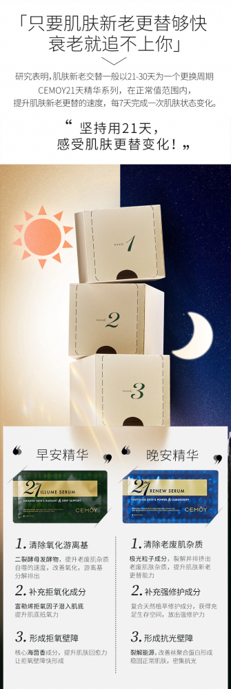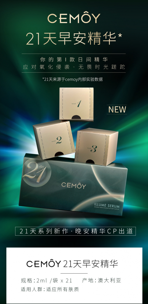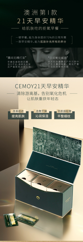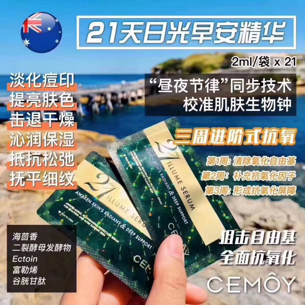 【新春特价】【新品上架】【Cemoy澳洲21天日光早安精华液/21天早安精华2.1毫升×21袋/盒】 节后秒发或顺丰即发!! 新品上架‼️给肌肤吃的“抗氧早餐”来了‼️CEMOY新品【21天日光早安精华】多重“贵妇级”抗氧成分:海茴香活性精萃➕Ectoin➕二裂酵母➕富勒烯,拒绝氧化自由基侵蚀🏻21天击退初老,不惧日间侵袭